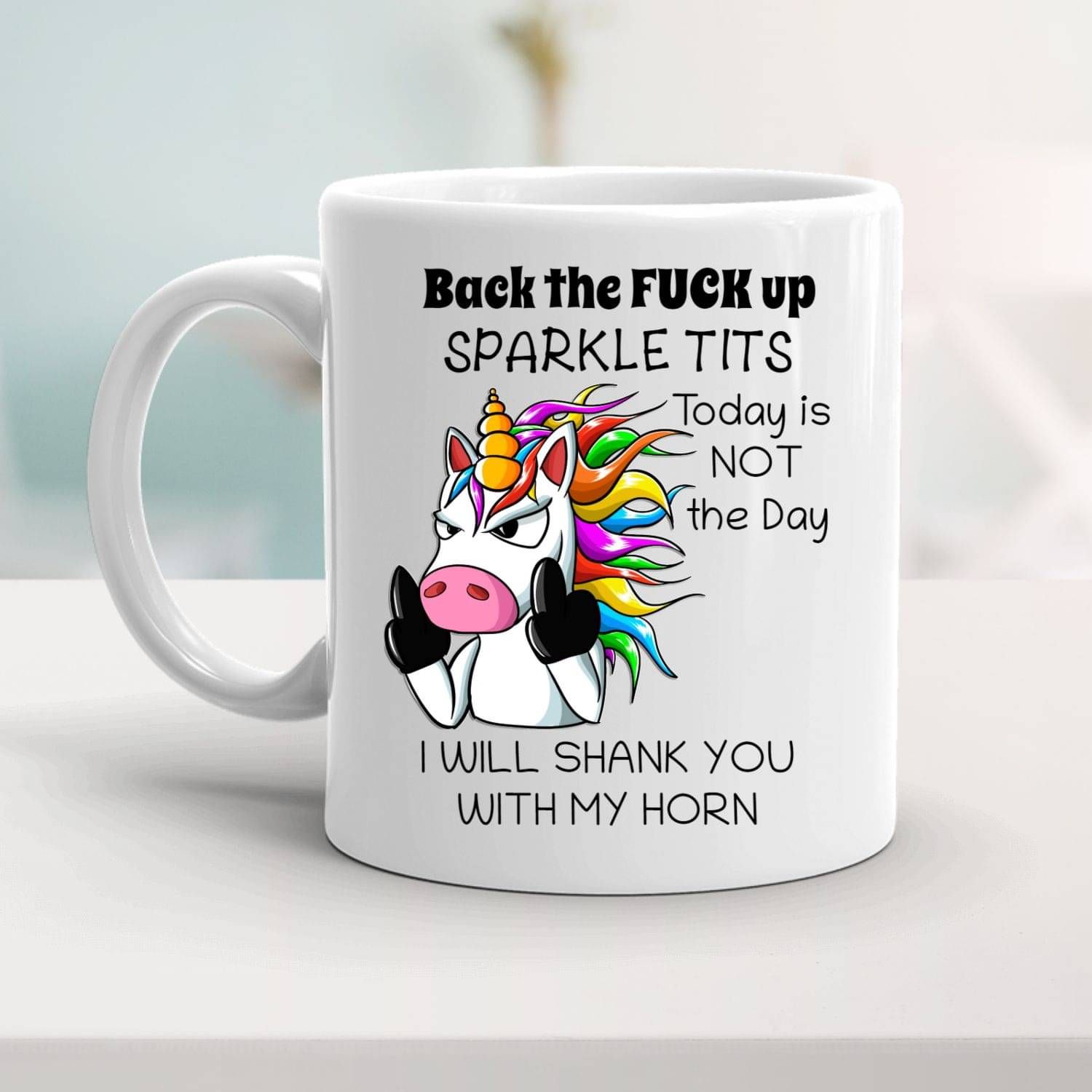 Back the F Up Sparkle Tits Mug โ Funny Unicorn Coffee Mug
