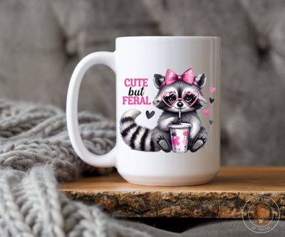This “Cute But Feral” raccoon mug is your new emotional support cup — perfect for anyone living their soft-but-chaotic era. She’s adorable. She’s sparkly. She drinks out of a suspiciously pink cup. She will steal your snacks.