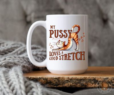 My Pussy Loves a Good Stretch Funny Cat Mug