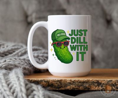 Our “Just Dill With It” mug is here to spice up your morning and remind you that sometimes life is a brine… and sometimes you just gotta pickle your battles.