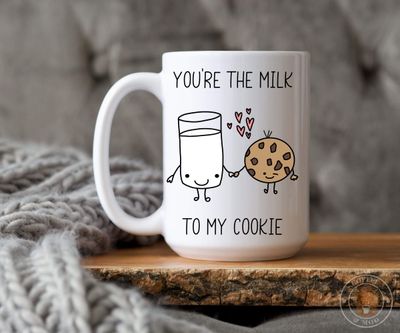 Our “You’re the Milk to My Cookie” mug brings full cute-attack energy with its happy little duo holding hands like they’re about to skip into a rom-com. Whether it’s for your partner, your BFF, or the person who always eats your last cookie (the true test of love), this mug is guaranteed to get a giggle and a warm fuzzy aww.